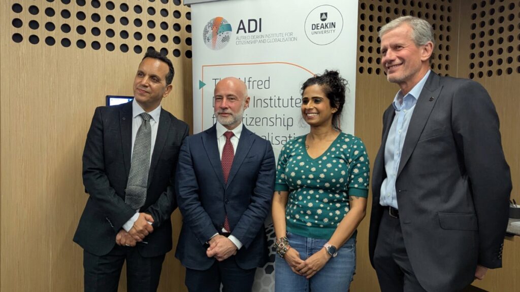 The UNESCO Chair, Deakin Distinguished Professor Fethi Mansouri, was honoured to welcome the EU Ambassador to Australia, His Excellency Gabriele Visentin, to deliver a presentation at Deakin University this month.